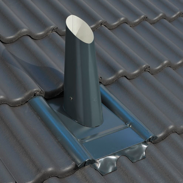 Stiefelentlüftung Typ Beton (Titanzink) mit Kappe, passend für Betondachsteine mit 330 mm Breite